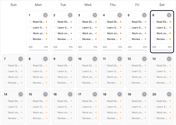A personalized monthly roadmap that organizes your learning goals into small, achievable steps — making progress effortless and consistent.