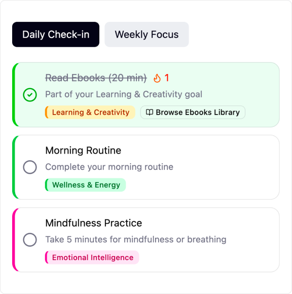 Every completed task builds momentum — helping you stay motivated and engaged in your personal growth journey.